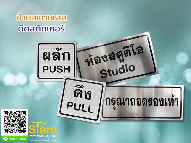 ป้ายสแตนเลสสีเงิน ติดสติกเกอร์สีดำ ราคา 120 บาท