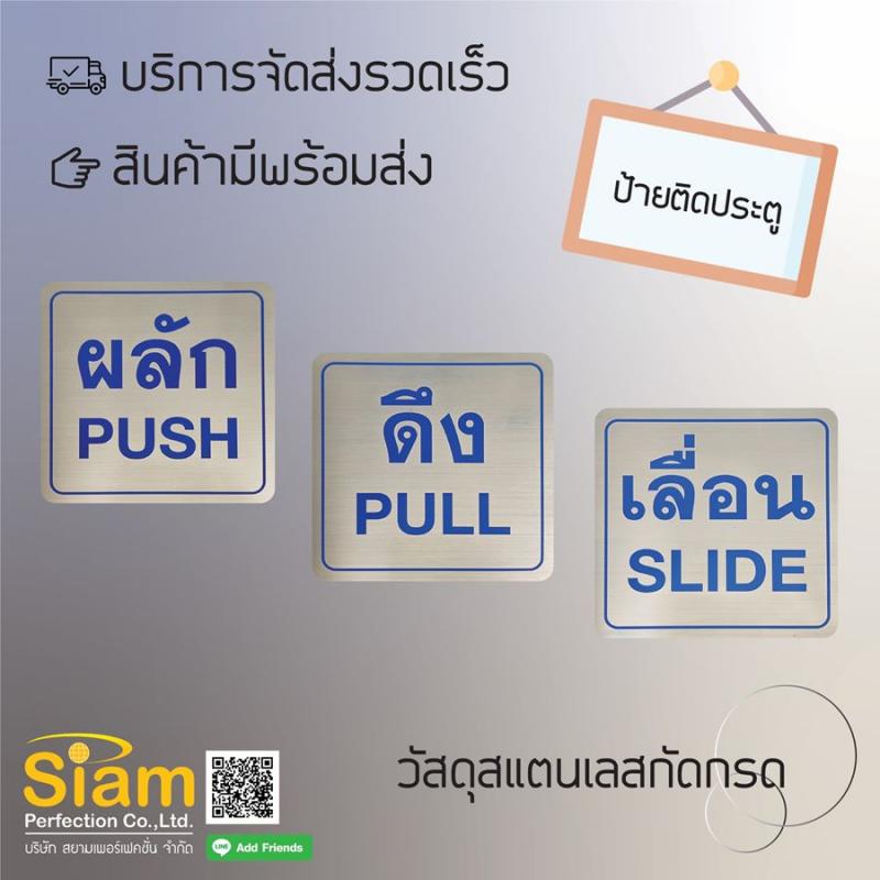 ป้ายติดประตู ผลักดึงเลื่อน วัสดุอะคริลิคติดสติกเกอร์ ราคา 110 บาท