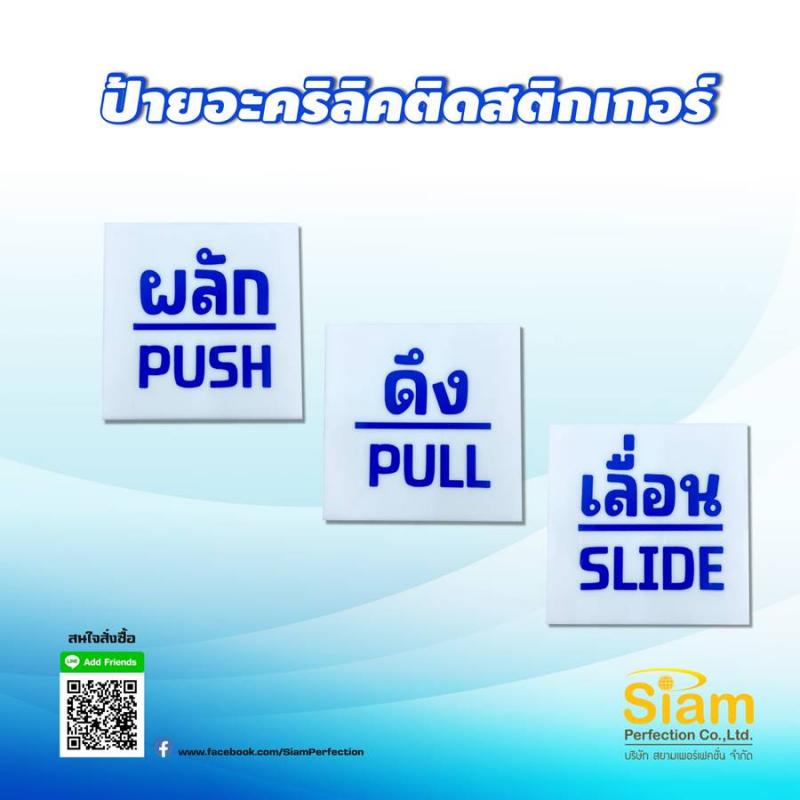 ป้ายอะคริลิคติดสติกเกอร์ ผลัก ดึง เลื่อน พร้อมส่ง ราคา 110 บาท