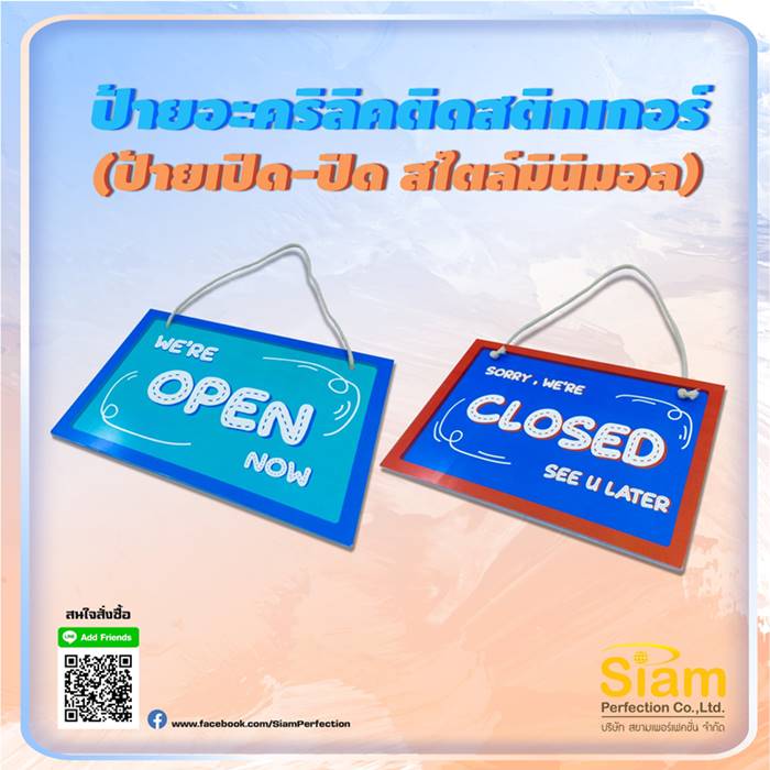 ป้ายอลูมิเนียมติดสติกเกอร์ เปิดบริการ ปิดบริการ ราคา 340 บาท