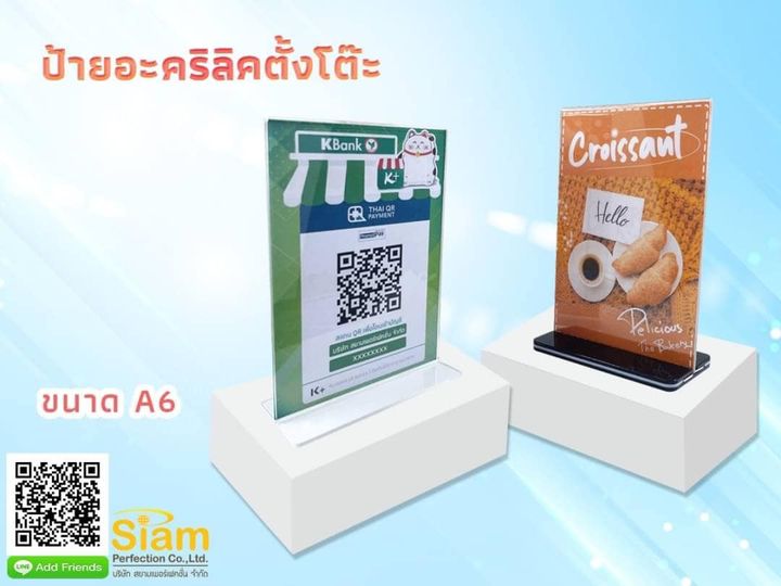 ป้ายอะคริลิคตั้งโต๊ะสแกน ราคา 129 บาท