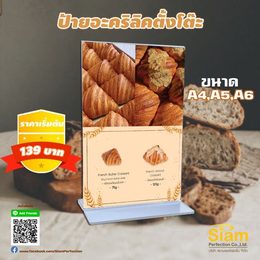 ป้ายอะคริลิคตั้งโต๊ะ ราคา 129 บาท