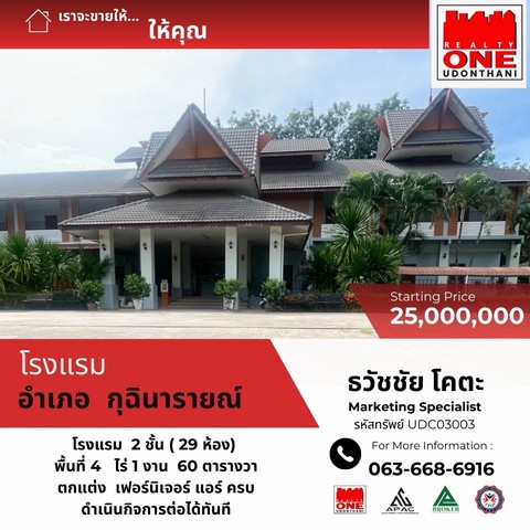 โรงแรม + อาคารสปา ขาย 40 ล้าน เนื้อที่รวม 206.4 ตรว. หนองป่าครั่ง อ.เมือง ตึกใหม่ ยังไม่ติดตั้งเฟอร์นิเจอร์ พร้อมตกแต่งตามสไตล์ผู้ซื้อ ราคา 40000000 บาท