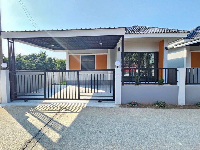 บ้านสร้างใหม่ทรงปั้นหยาร่วมสมัย มีมุกระเบียงบ้าน ทำเลดีหน้าบ้านติดถนนลาดยาง ค้าขายได้