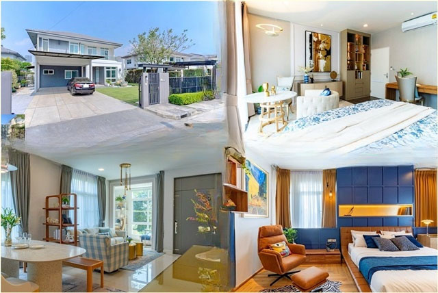 ใหญ่มาก มัณฑนา 110ตรว.บางนา กม.7 MRT ศรีลาซาล ให้เช่าคฤหาสน์หรู 2 ชั้น 4นอน 230ตรม. เฟอร์ครบ 5น้ำ 5แอร์ 4จอดรถ มีสวน อีเกียบางนา