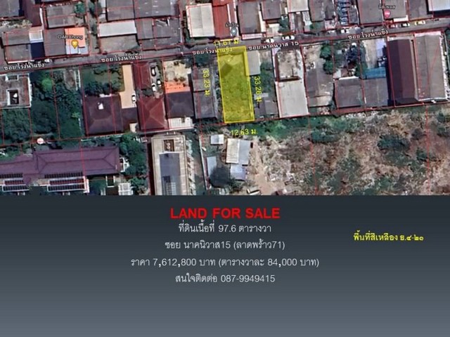 ขายที่ดินซอยนาคนิวาส15 (ลาดพร้าว71) เนื้อที่ 97.6 ตารางวา