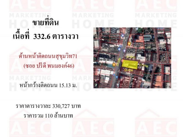 ขายที่ดินพร้อมอาคารพาณิชย์ สุขุมวิท71 (ปรีดี) เนื้อที่ 332.6 ตร.ว สุขุมวิทตอนกลาง ติด ถ.สุขุมวิท 71