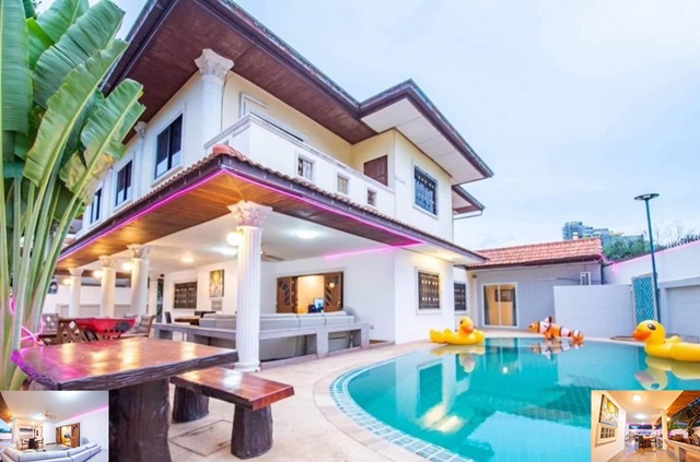 ฝั่งทะเล ทำรายวันได้ หาดจอมเทียน 700ม. ชับพฤกษ์ ให้เช่าพูลวิลล่า 2 ชั้น120ตรว. 280ตรม. แหล่งชุมชน 7นอน 6น้ำ 3จอดรถ 8แอร์ ตลาดน้ำ 4 ภาค
