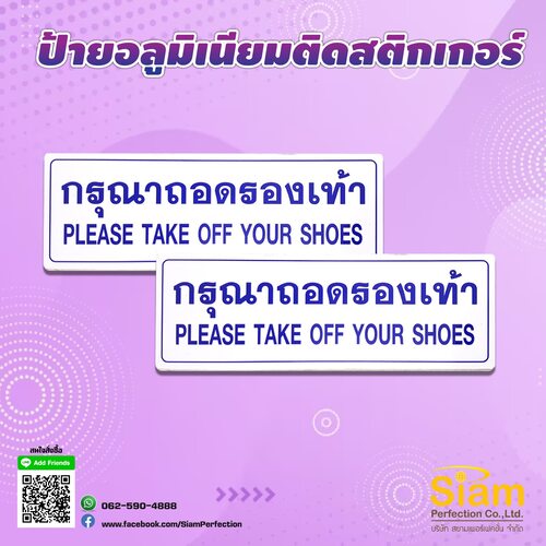 ป้ายกรุณาถอดรองเท้า งานอลูมิเนียมติดสติกเกอร์