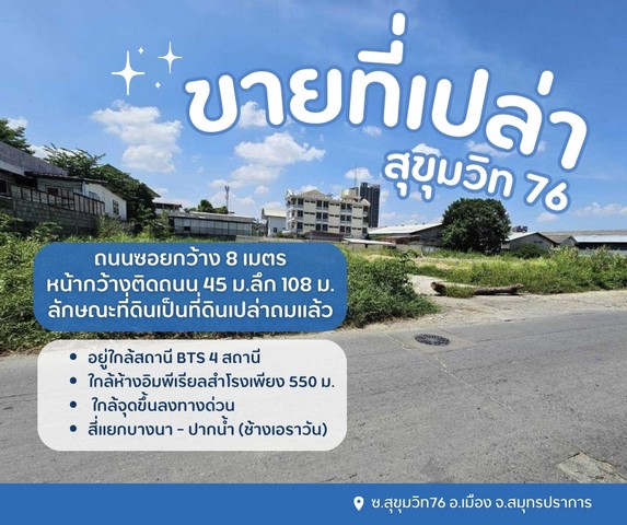 ขายที่ดินเปล่า..สุขุมวิท 76 ราคาว้าวถูกสุดในย่านนี้ ใกล้จุดขึ้นลงทางด่วน
