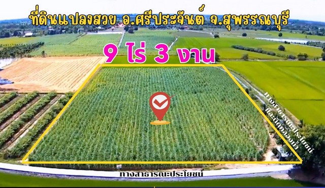 ที่ดินสวย 9 ไร่ 3 งาน 5.3 ตารางวา ต.ดอนปรู อ.ศรีประจันต์ จ.สุพรรณบุรี