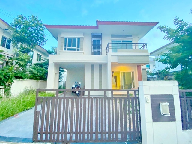 ให้เช่าบ้านเดี่ยว 2 ชั้น 58 ตร.วา 3 ห้องนอน พฤกษาปูริ กิ่งแก้ว 37 พร้อมอยู่ ทำเลดี วิวสวนหลังมุม เป็นส่วนตัว ใกล้สนามบินสุวรรณภูมิ Price 28000 บาท