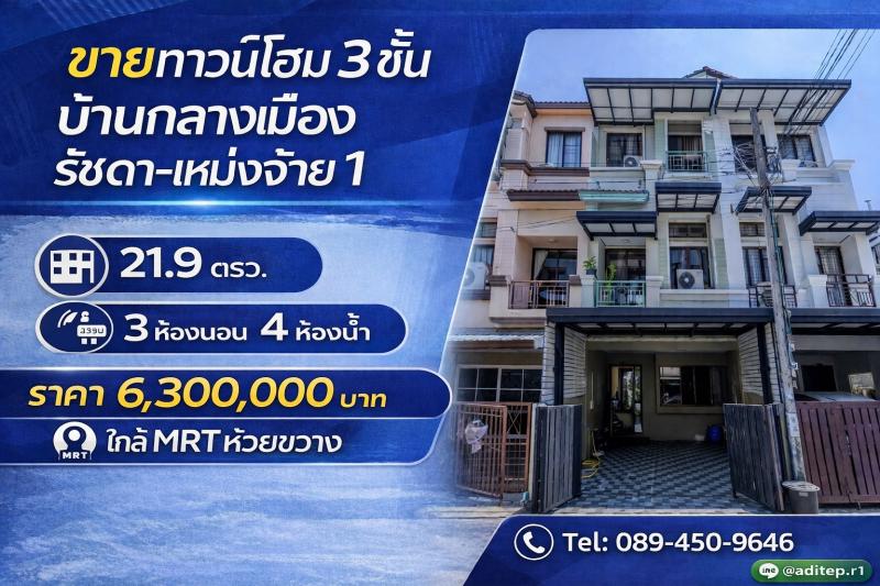 ขายทาวน์โฮมหลังใหญ่ 4 ชั้น 52 ตรว. 6 ห้องนอน ประชาอุทิศ ซอย 1 ย่านห้วยขวาง รีโนเวทใหม่พร้อมอยู่ เข้าออกหลายทาง จอดรถ 6 คัน Price 18900000 บาท