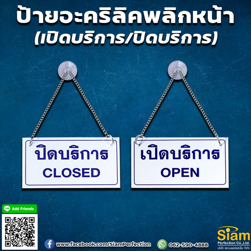 ป้ายอลูมิเนียมติดสติ๊กเกอร์ เปิด ปิด บริการ พร้อมใช้งาน ราคา 340 บาท