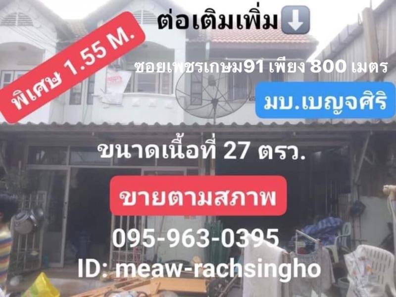 M-4416 ขายถูก‼ เหมาะทำกำไร ขายทาวน์เฮ้าส์ 2 ชั้น (ห้องมุม) มบ.เบญจศิริ ซอยเพชรเกษม 91 ต่อเติมเต็มพื้นที่