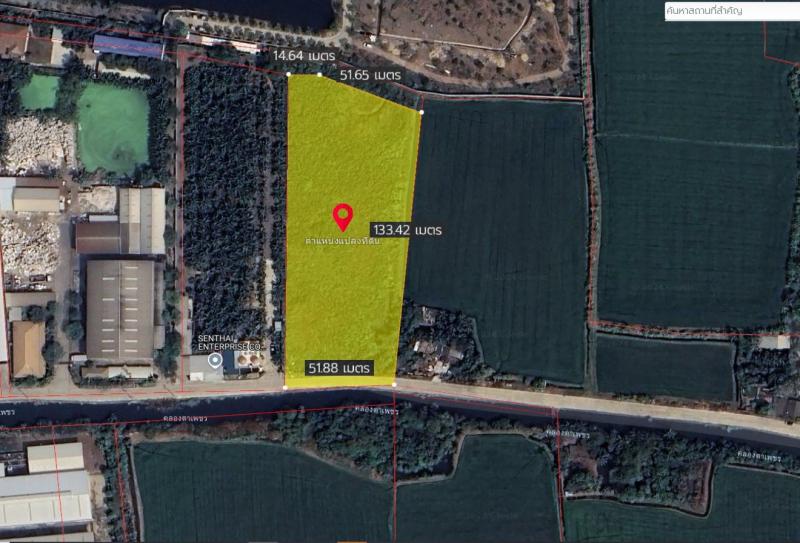 ขายที่ดิน 5 ไร่ ใกล้ถนนเศรษฐกิจ ท่าเสา กระทุ่มแบน สมุทรสาคร รูปแปลง สี่เหลี่ยมผืนผ้าสวยงาม กว้าง 52 เมตร × ยาว 153 เมตร