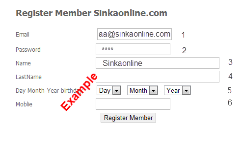 หน้าสมัครสมาชิกของ sinkaonline.com